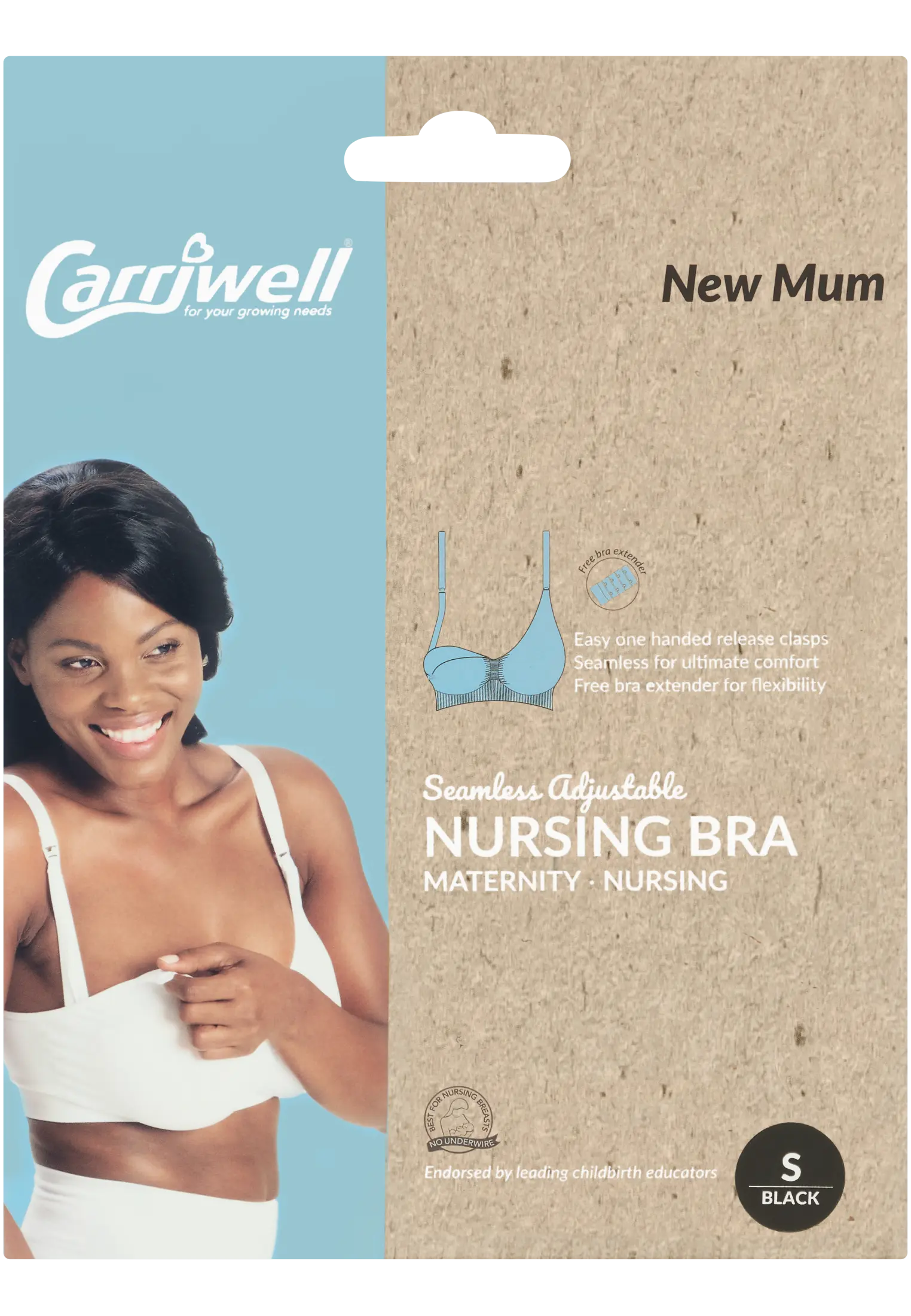 The Carriwell Maternity & Nursing bra is a comfortable, soft and light nursing bra that moulds to your changing body shape. Made from ultra soft and flexible seamless microfibre fabric, this nursing bra is also highly functional with adjustable straps, fully openable drop cups allowing for maximum skin-to-skin contact between mom and baby, and convenient one handed open-and-close nursing clasps.